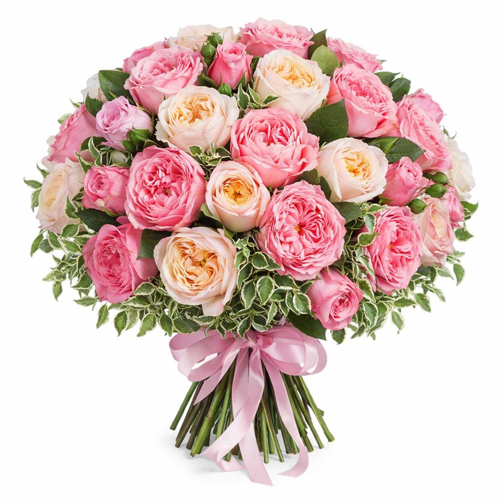 Роза пионовидная розовая, оранжевая, белая. Ростовка: 50,60 см. Сезон: круглый год. Стойкость: высокая.